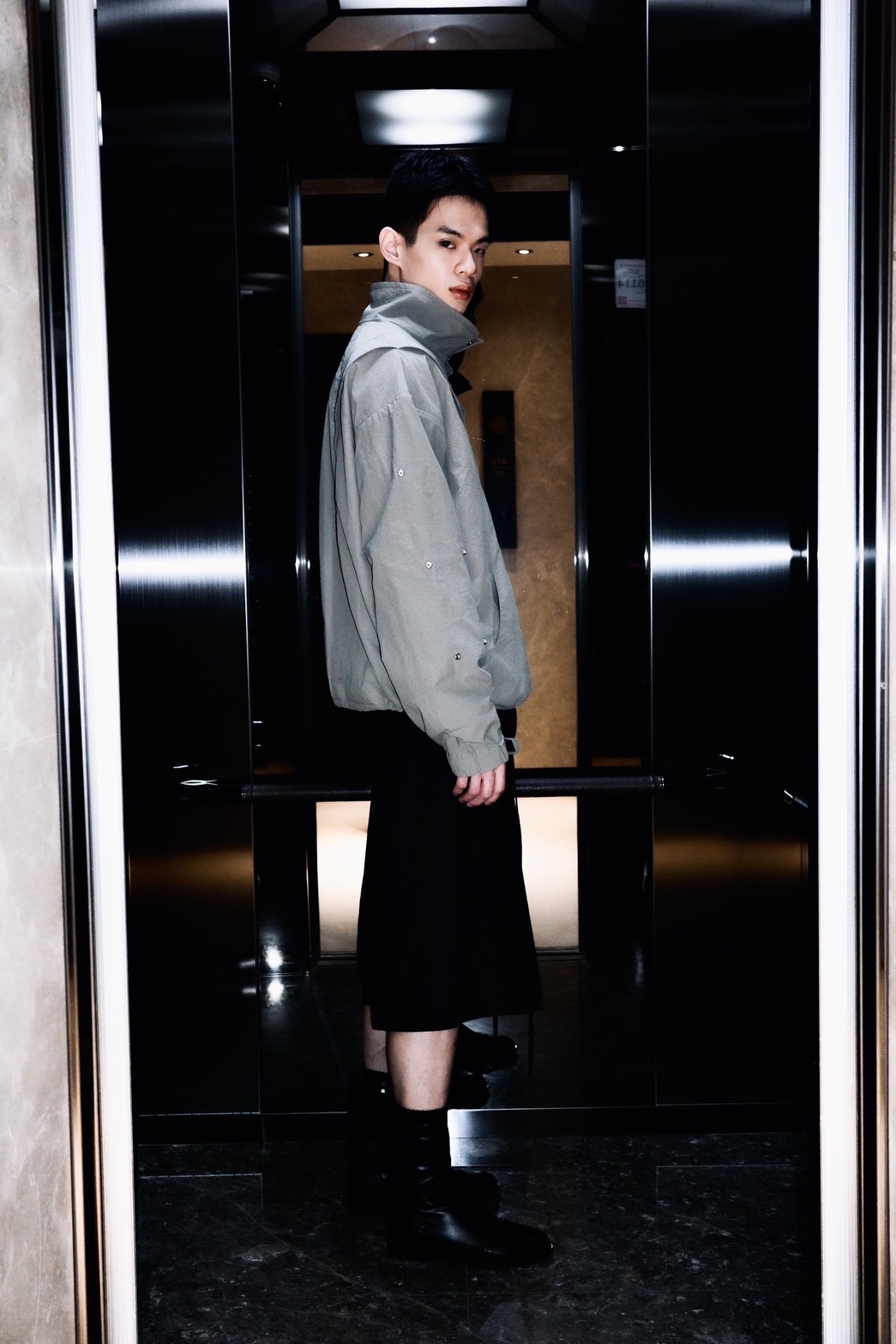 領子、衣襬與衣袖皆為可調式設計,可依穿著需求調整輪廓寬度,兼顧比例與活動度,具備高度可玩性。