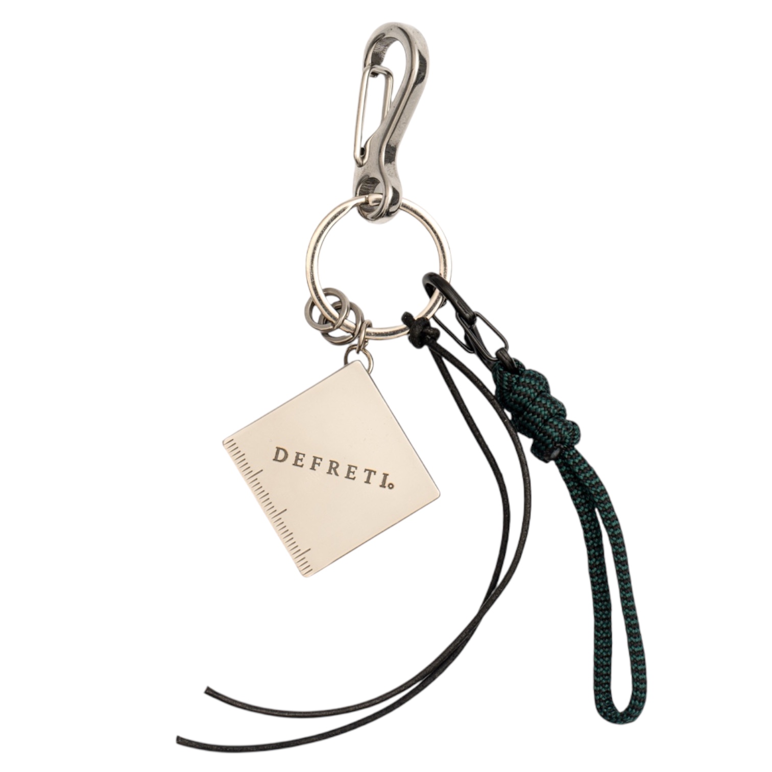 Finished with a leather cord and rope knot,it adds a subtle highlight whether clipped at the waist or on a bag.